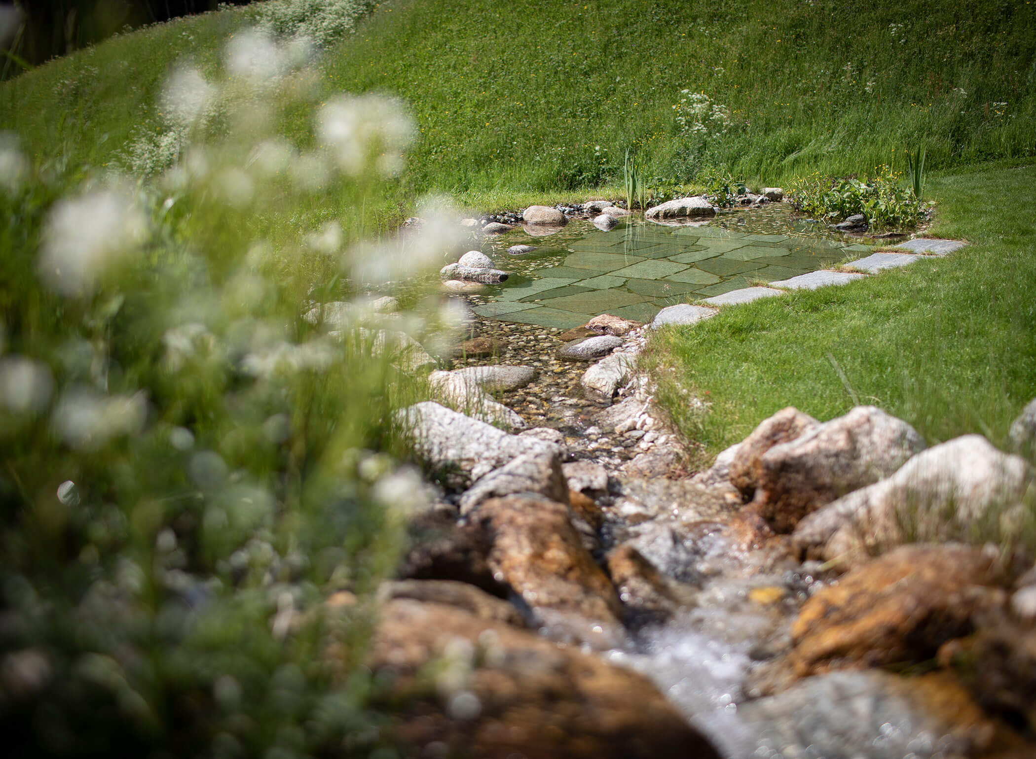 Pure relaxation awaits you in the mill’s sauna area. Whether in the Finnish sauna or under the sauna shower, you can unwind and recharge after an active mountain day. The Kneipp pond in front of the mill offers refreshing cool-downs – perfect for a morning Kneipp round. Or how about walking barefoot in the dew-covered grass around the mill?